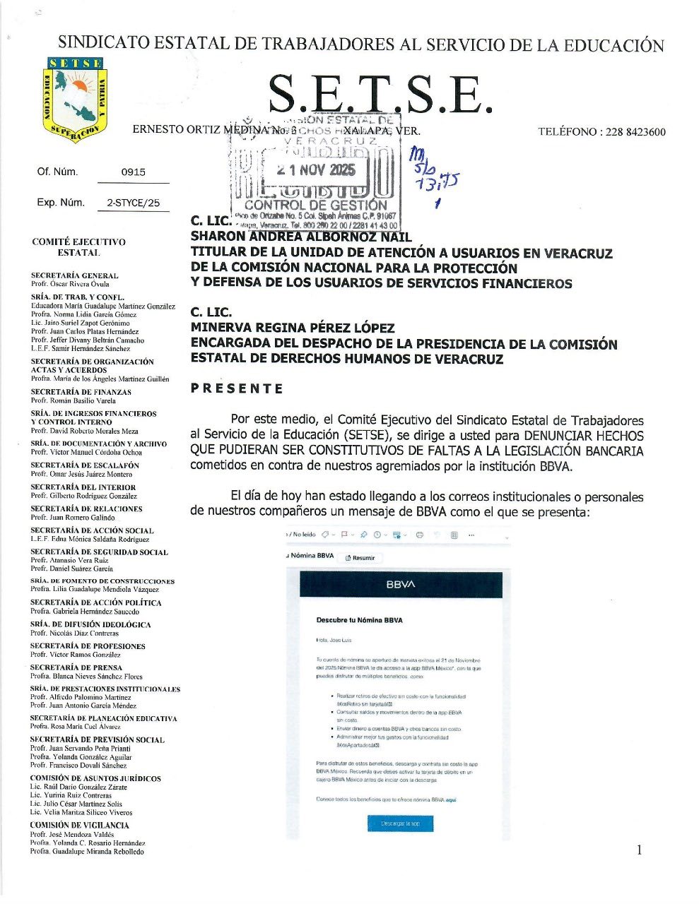 El Comité Ejecutivo Estatal del Sindicato Estatal de Trabajadores al Servicio de la Educación,