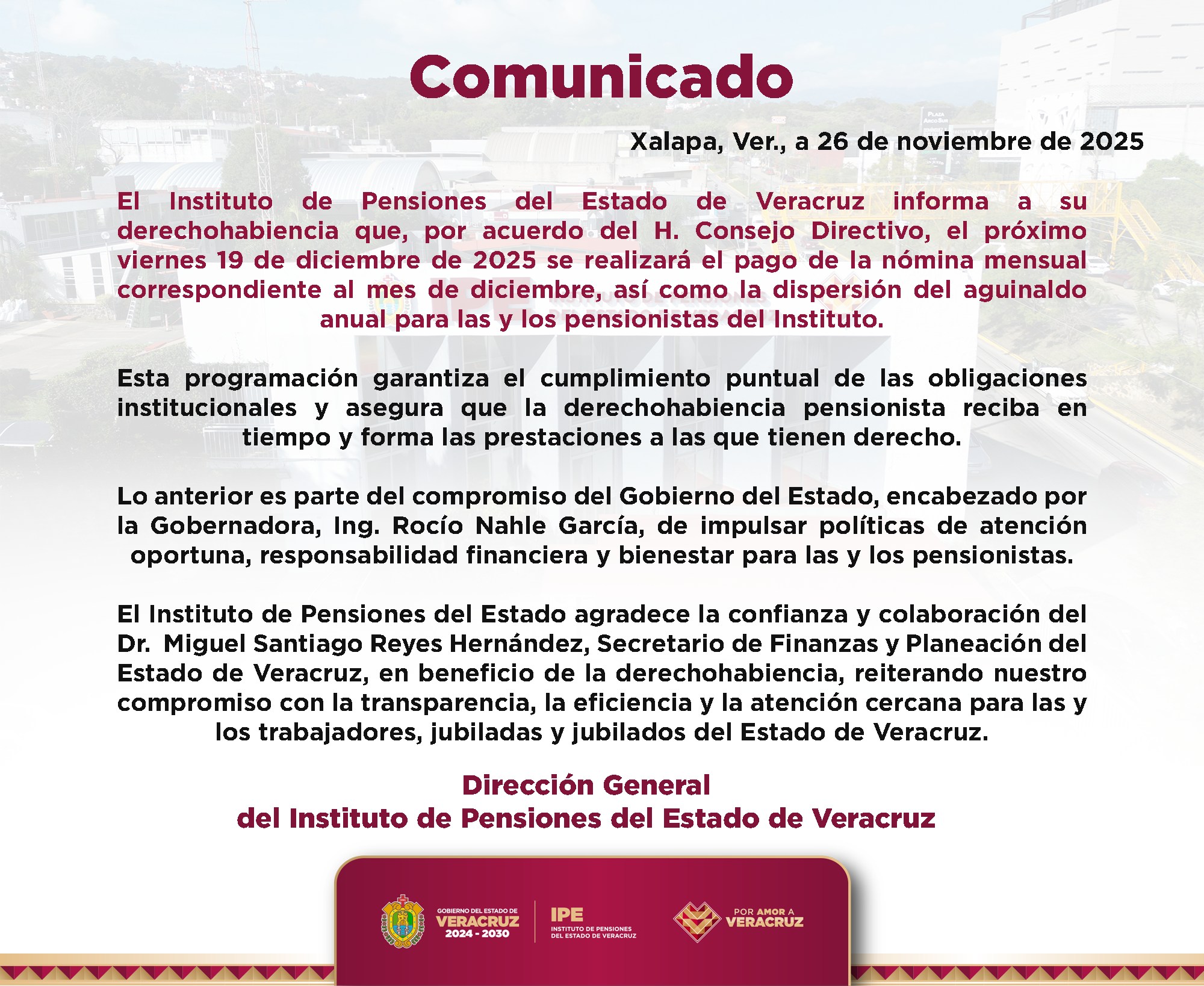 Se informa que ya se encuentra disponible en el sitio Web de la Secretaría de Educación de Veracruz, el calendario de pagos de diciembre 2024.