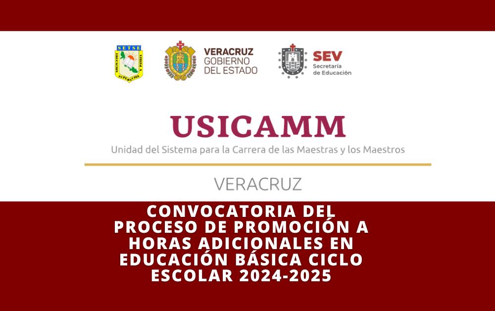 Se informa que ya se encuentra disponible la Convocatoria del proceso de PROMOCIÓN A HORAS ADICIONALES EN EDUCACIÓN BÁSICA ciclo escolar 2024-2025, puedes consultarla en este apartado y en nuestro micrositio: Sistema para la Carrera de los Maestras y las Maestros.
