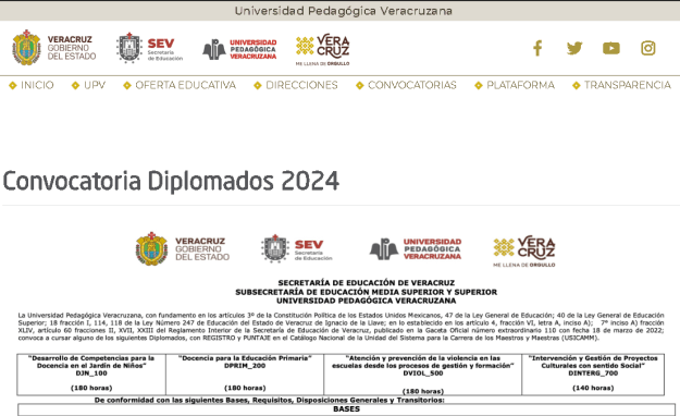 encuentra disponible la Convocatoria de diplomados por parte de la Universidad Pedagógica Veracruzana