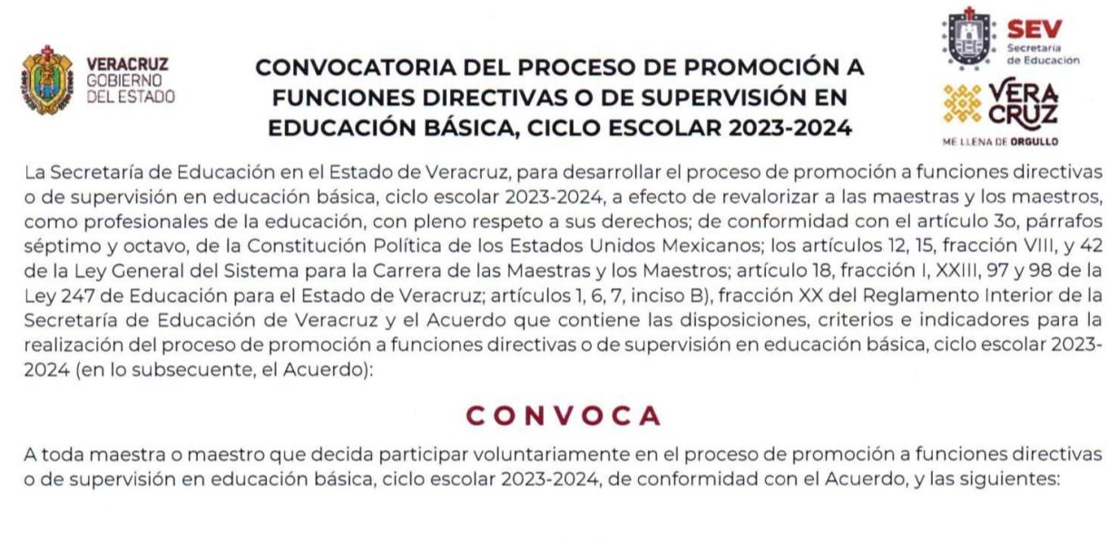 Se informa que ya se encuentra disponible en nuestro Micrositio "Sistema Carrera para la Carrera de las Maestras y los Maestros" la Convocatoria del Proceso de Promoción a Funciones Directivas o de Supervisión en Educación Básica para el ciclo escolar 2023-2024.