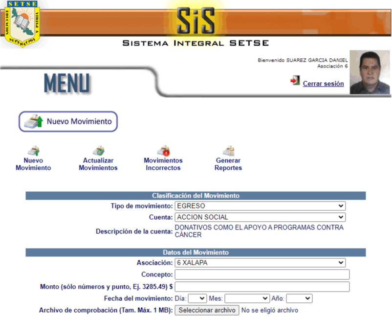 Sistema para el Reporte y Captura de Cortes de Caja de las Asociaciones de Jubilados y Pensionados