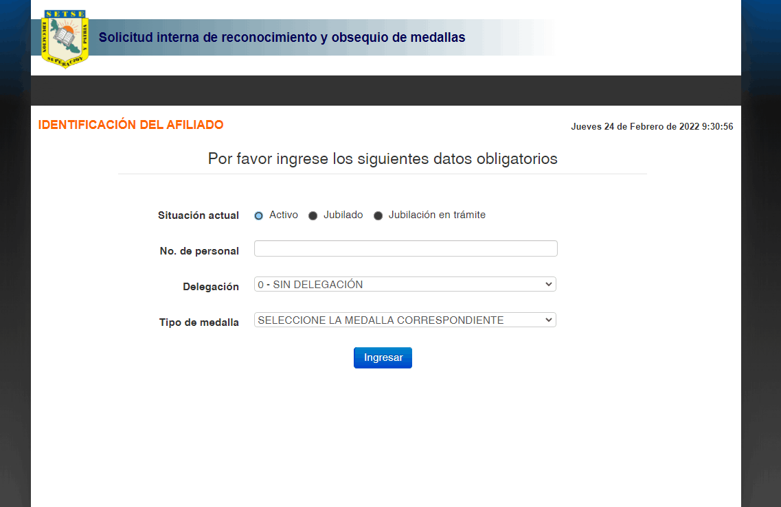 Sistema para la solicitud de la credencial del SETSE para afiliados activos y jubilados