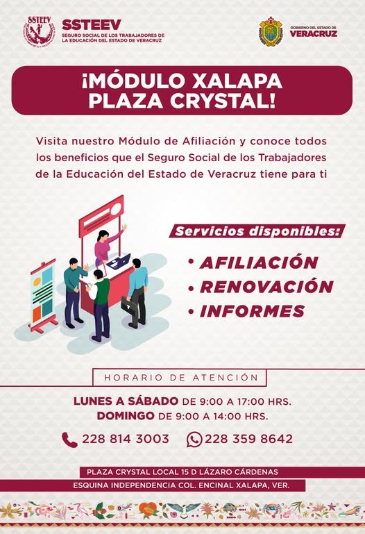 Se informa que a partir del lunes 26 de enero 2026 el Seguro Social de los Trabajadores de la Educación del Estado de Veracruz (SSTEEV) contará con servicio para tramitar y agendar préstamos en línea, vía sindical y presencial a través del siguiente enlace: